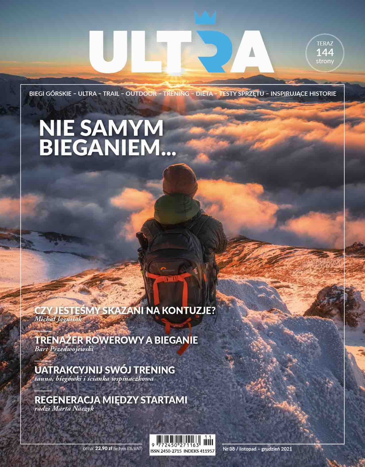 Magazyn ULTRA 38 – to 144 strony dla wszystkich tych, którzy lubią biegi górskie i długodystansowe oraz tych, którzy cenią sobie aktywny wypoczynek na świeżym powietrzu. W tym numerze tematem przewodnim jest „nie samym bieganiem….”. Znajdziecie tu zatem poza stricte biegowymi tekstami, materiały poświęcone biegówkom, wspinaczce, czy nawet saunowaniu. Wszystko oczywiście jednak w kontekście biegów górskich i ultra. Magazyn Ultra polecamy w atrakcyjnej prenumeracie